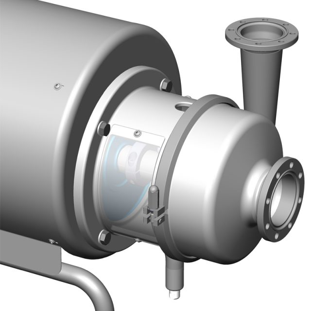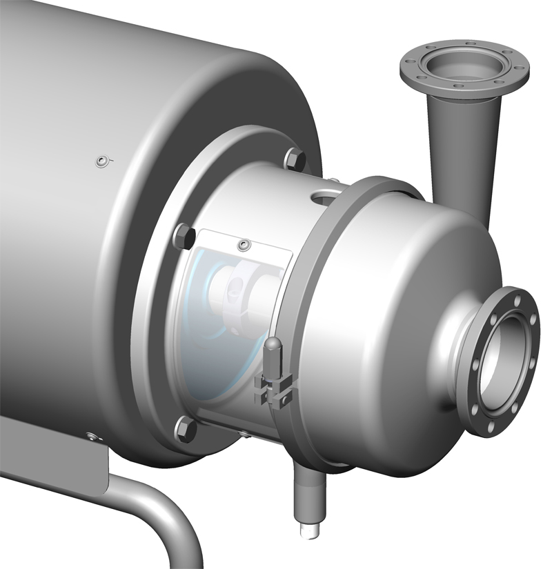 电机符合IEC标准,采用不锈钢护罩保护,并配有高度可调的卫生设计支腿。